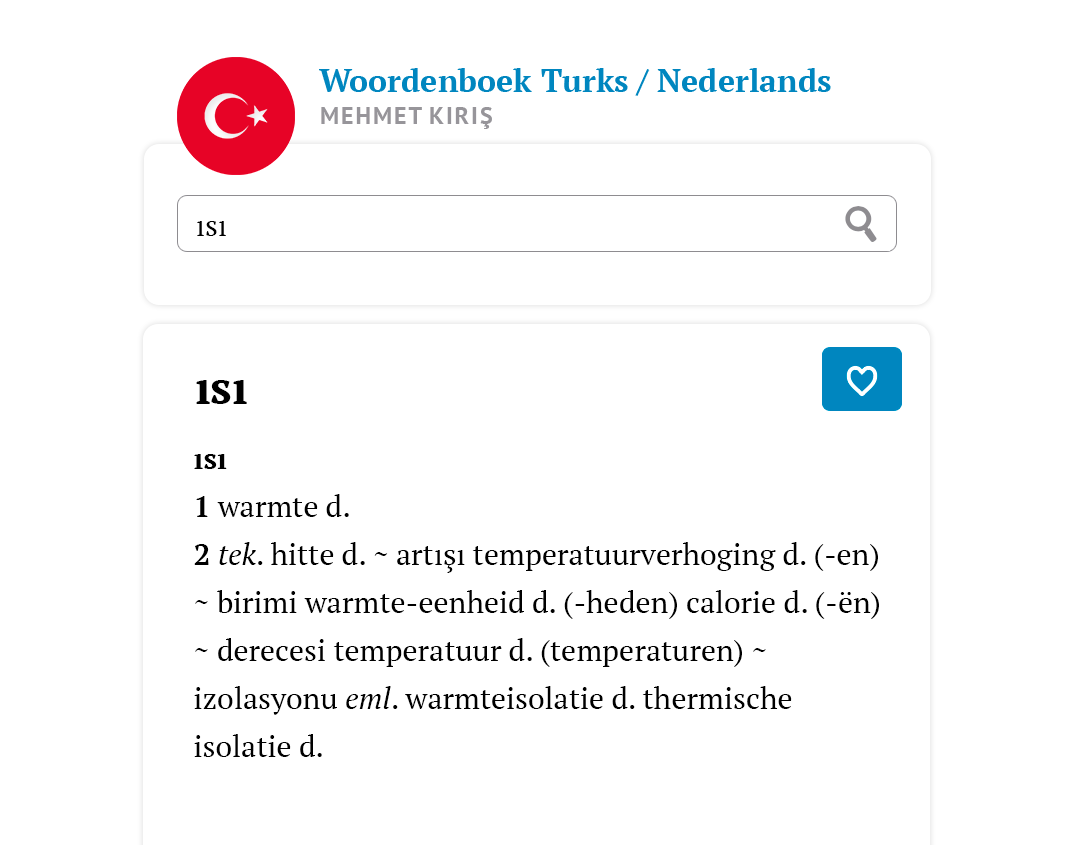 In 1989 verscheen het eerste woordenboek Nederlands/Turks door Mehmet Kiriş. Gezien de enorme aantallen Turkse migranten werd dit werk door deskundigen en gebruikers met open armen ontvangen.Het woordenboek bevat de meeste trefwoorden en de database blijft voortdurend in omvang toenemen. Elk nieuw werk komt tot stand in samenspraak met een redactie bestaande uit Nederlands- en Turkstaligen.Het woordenboek Nederlands / Turks - Turks / Nederlands is nu nog steeds een van de meest gebruikte woordenboeken. Nu ook eenvoudig digitaal te raadplegen in een volledig up-to-date versie met de nieuwste spelling.